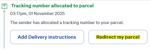 If your NZPost order has already shipped, not to worry! You can redirect the order through your tracking link by selecting "Redirect my parcel".